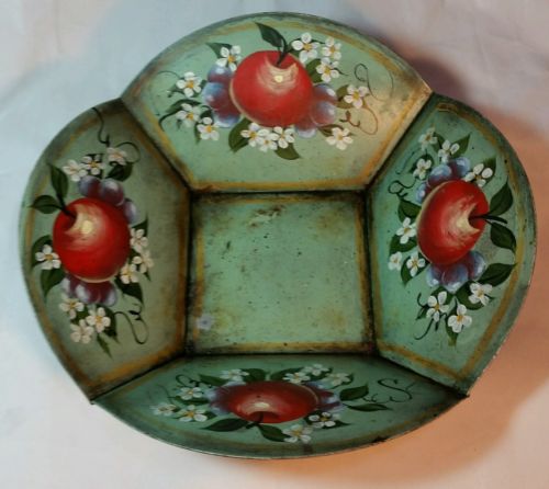 Title (ebay affiliate link): 19th Century American Arts Craft Tole Bowl Tray Painted Apples Signed Tin Metal
