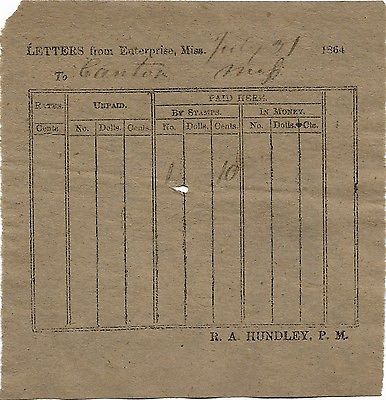 Title (ebay affiliate link): 1864 Enterprise, Mississippi Post Office Document