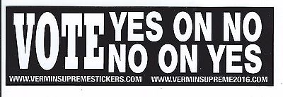 Title (ebay affiliate link): Vermin Supreme Sticker: Yes on No, No on Yes