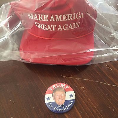 Title (ebay affiliate link): Trump Make America Great Again Red Trucker Hat + Trump for President 2016 Button