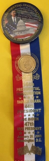 Title (ebay affiliate link): January 20, 2009 Obama Inaugural Pin, Ribbon and "Coin."