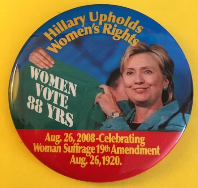Title (ebay affiliate link): August 26, 2008 Hillary Upholds Women's Rights Celebrating Women Suffrage Pin