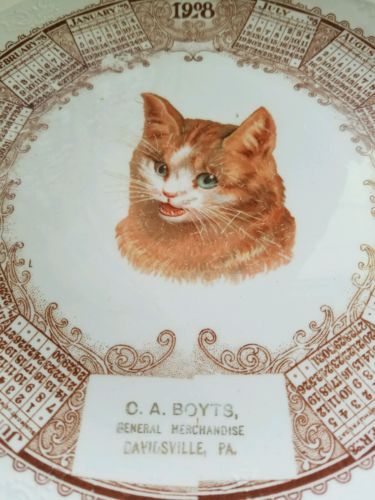 1908 C.A. Boots General Merchandise store calendar plate Davidsville PA kitten