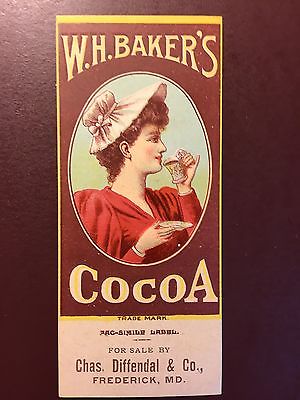 VICTORIAN Trade Card BAKER'S COCOA Chas. Diffendal Frederick Md. Winchester VA