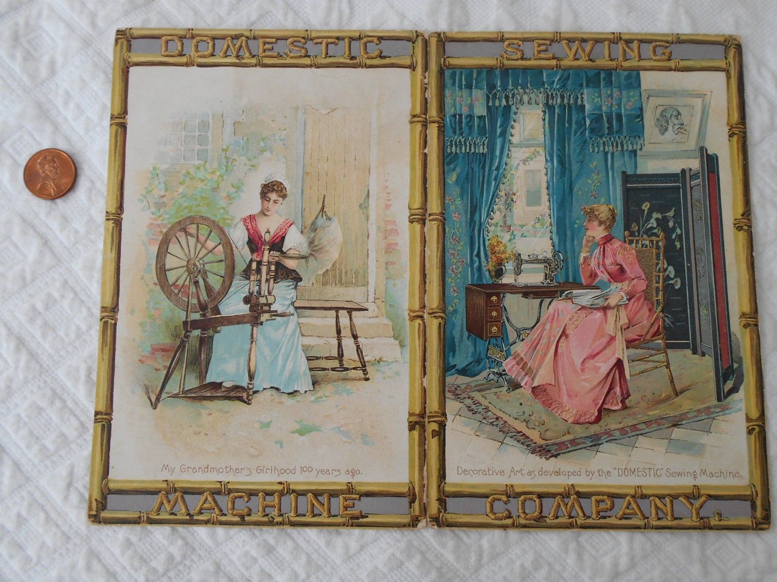 Title (ebay affiliate link): Antique Victorian Fold Open Domestic Sewing Machine Co. Ad Trade Card 1880's