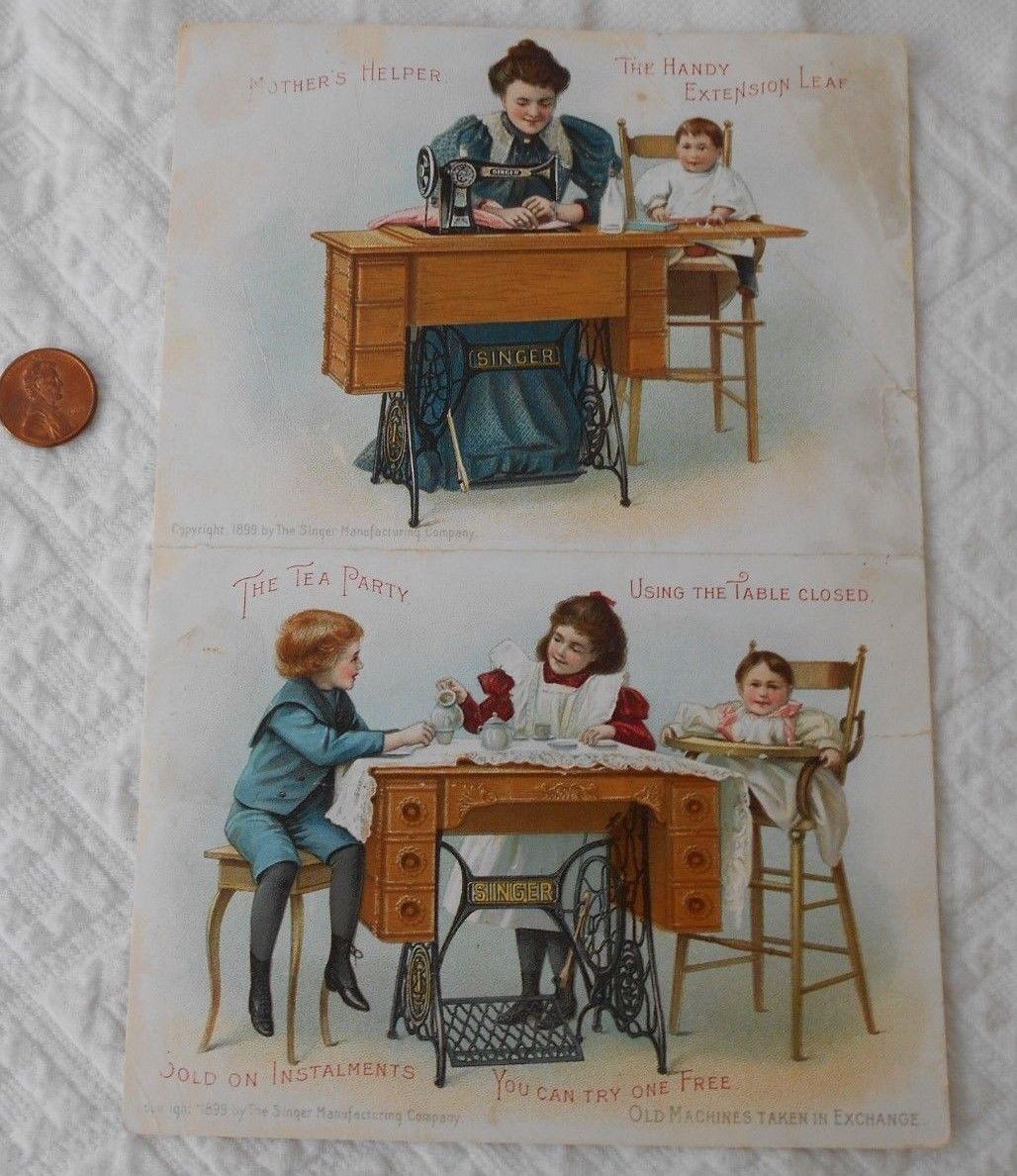 Title (ebay affiliate link): Antique Victorian Fold Out Singer Sewing Machine Co. Ad Trade Card 1899