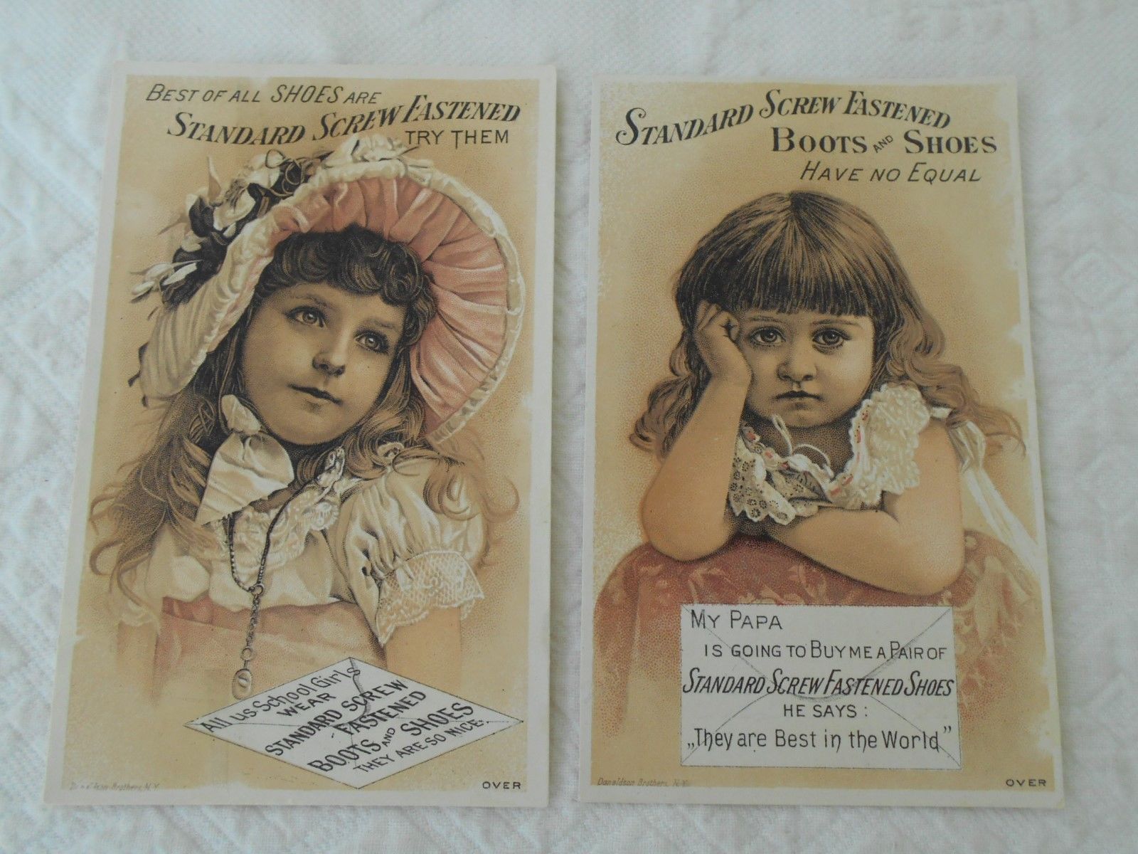 Title (ebay affiliate link): 2 Antique Victorian Trade Ad Cards Standard Screw Fastened Shoe Store Monroe MI
