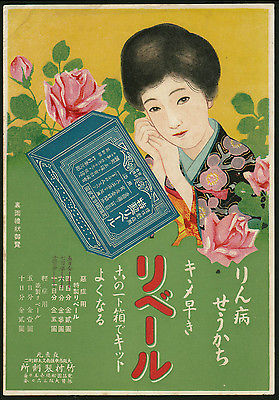 Title (ebay affiliate link): Japanese Vintage patent medicine flyer, for gonorrhea, kimono girl, rose.
