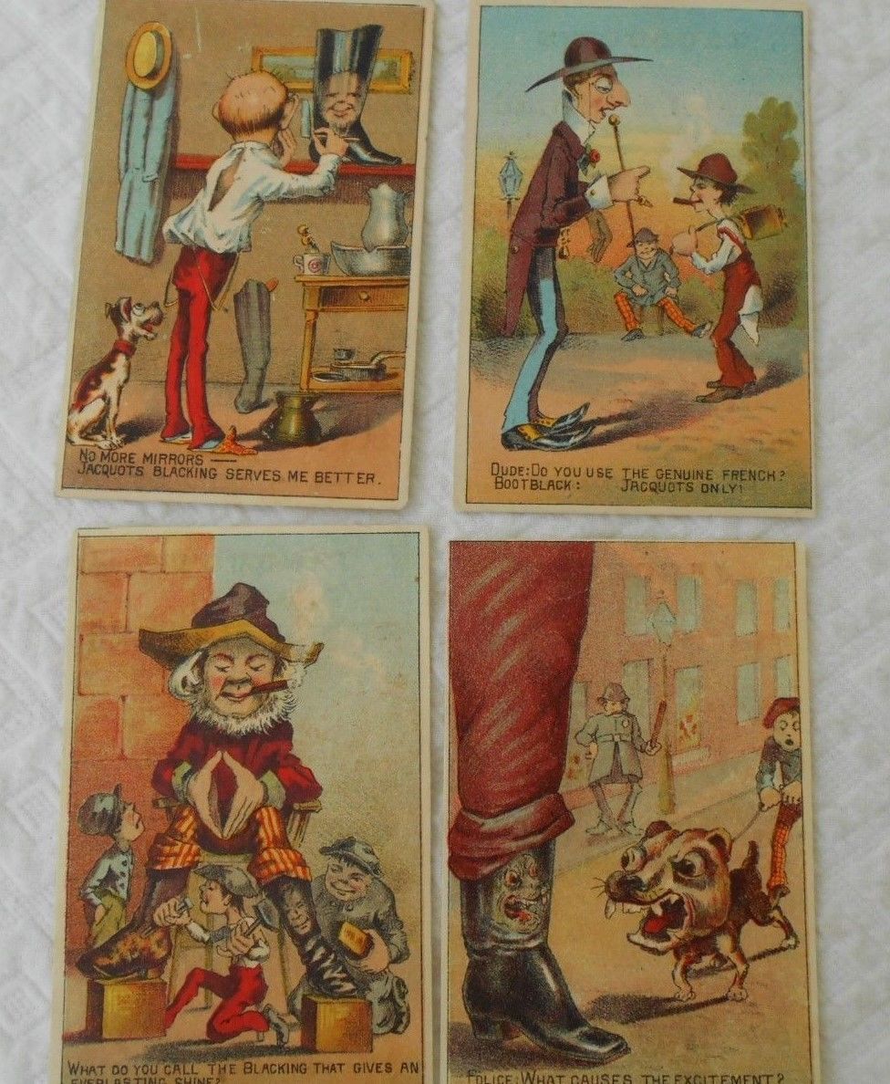Lot 4 Antique Victorian Trade Ad Comic Card Jacquot's Blacking Leather Polish