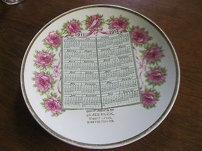 1911 1912 Advertising Calendar Plate James Muzik Meat Market Floral Design Owen