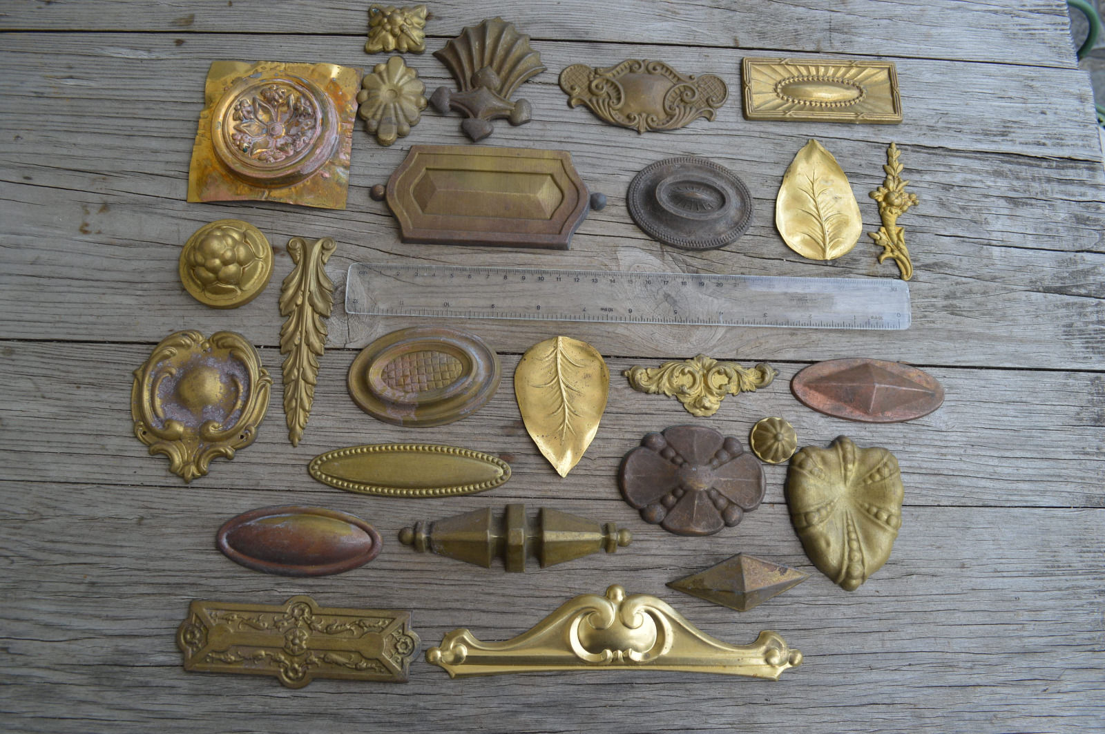 Title (ebay affiliate link): Job lot of original antique furniture mounts pressed brass copper ormalu 2