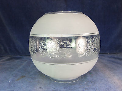 Vintage Frosted & Etched Shade For Oil Lamp - Early 20th C [5691]