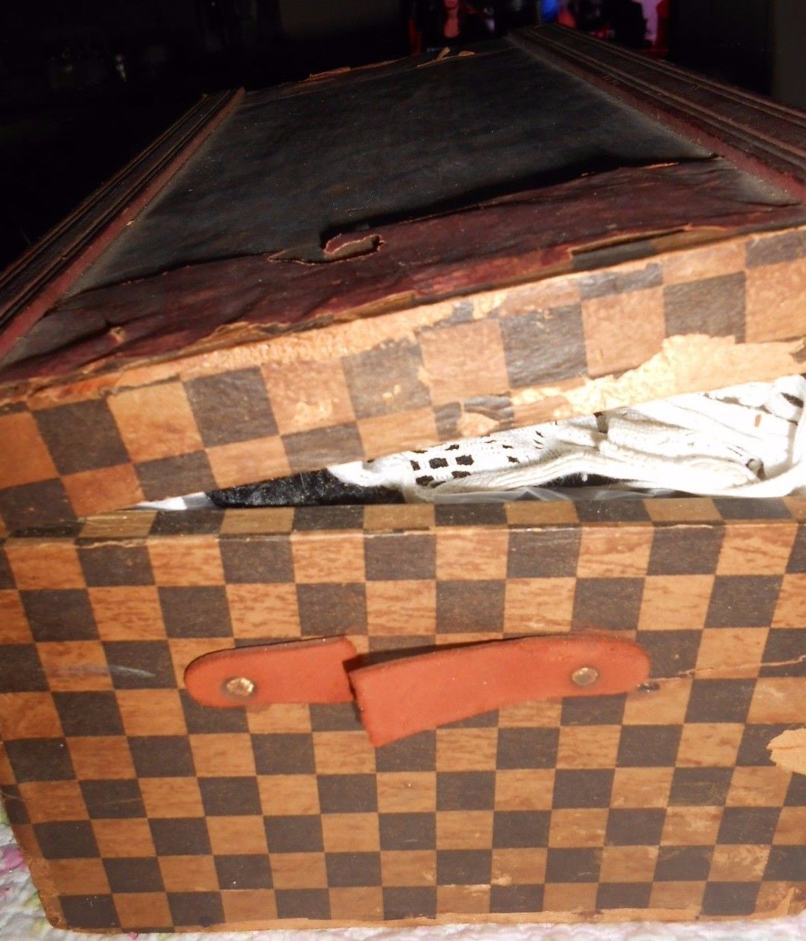 Title (ebay affiliate link): Antique Doll Trunk with Loads of Doll Clothes 13" long trunk