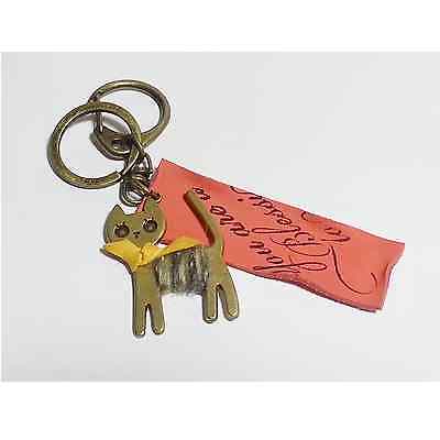 Leather Vintage Tone Red Key Chain Key Ring Accessories Cat NEW Handmade