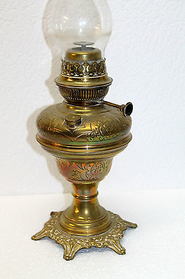 Antique Lumen Lamp to kerosene in brass chiseled glass cylinder *D.L. Brevette*
