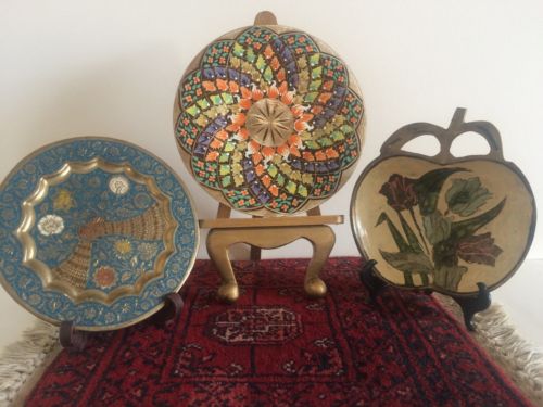 Title (ebay affiliate link): Three Indo-Turkish copper/brass polychrome enamel handmade plates/trinket bowl