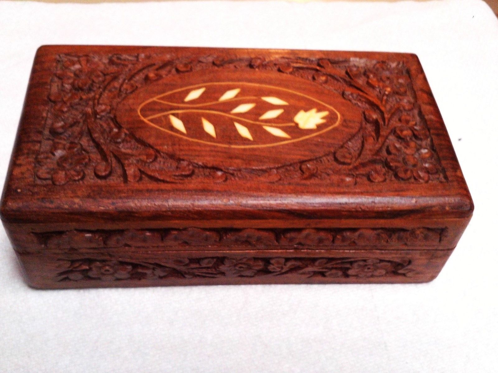 Title (ebay affiliate link): VINTAGE HAND CARVED JEWELRY / TRINKET BOX WHITE SHELL INLAY 6 1/2" BY 3 1/2" BY