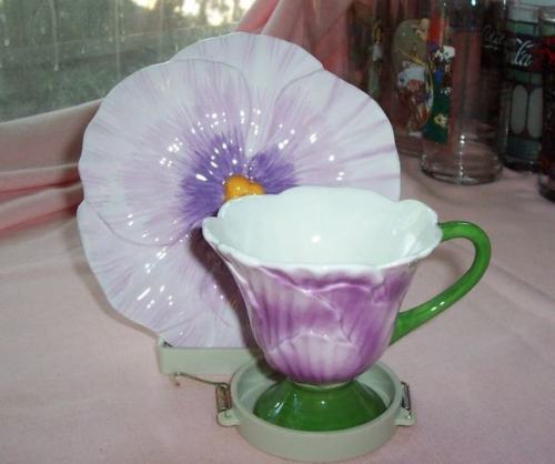 Title (ebay affiliate link): Vtg Teleflora Gift Floral Flower CUP SAUCER w/Stand PURPLE PANSY Tea Coffee NEW