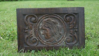 SUPERB 19thc MAHOGANY PANEL WITH CARVED MEDIEVAL MALE HEAD