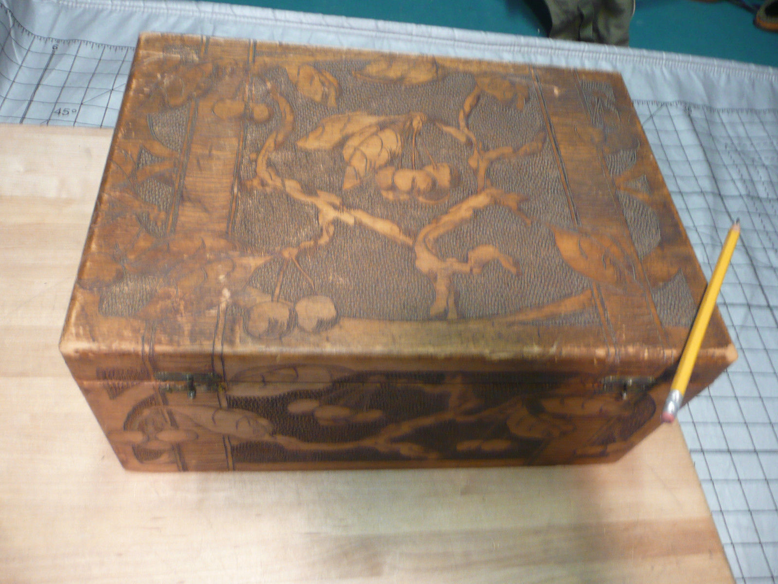 Vintage Hand cherry trees Carved Wooden Box big 14x10 inch