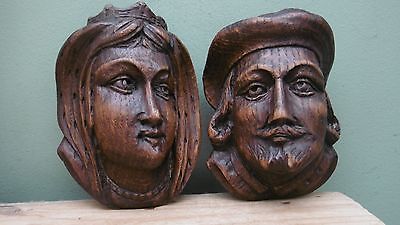 SUPERB Pr 19thc OAK CARVED BLACK FOREST MALE & FEMALE CORBELS