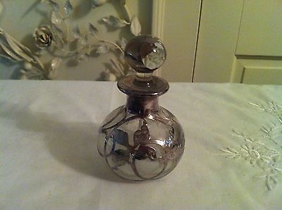Antique Perfume Bottle - Glass w/ Sterling Silver Overlay