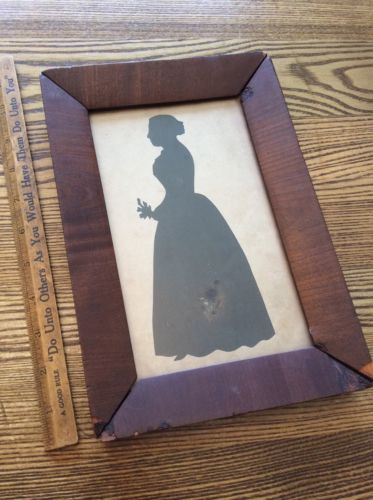 Title (ebay affiliate link): Antique Silhouette Portrait Hand Cut With Fabric Woman 1800s original Frame