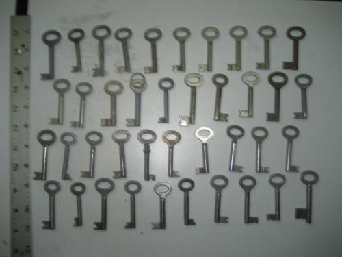 Title (ebay affiliate link): 40 Antique Vintage Old Hollow Barrel Steel Padlock Furniture Cabinet Keys AA