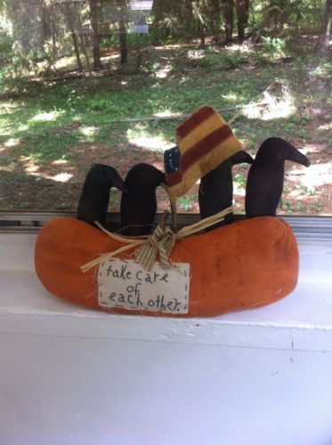 Primitive Fall Pumpkin Crow Shelf Sitter