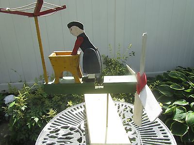 ANTIQUE-VINTAGE WHIRLIGIG WOMAN DOING WASH AND UMBRELLA CLOTHESLINE FOLK ART
