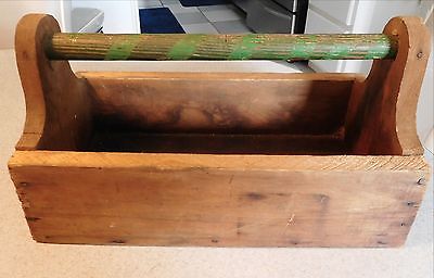 VINTAGE PRIMITIVE HANDMADE WOODEN CARPENTER TOOL BOX RUSTIC GARDEN CADDY TOTE