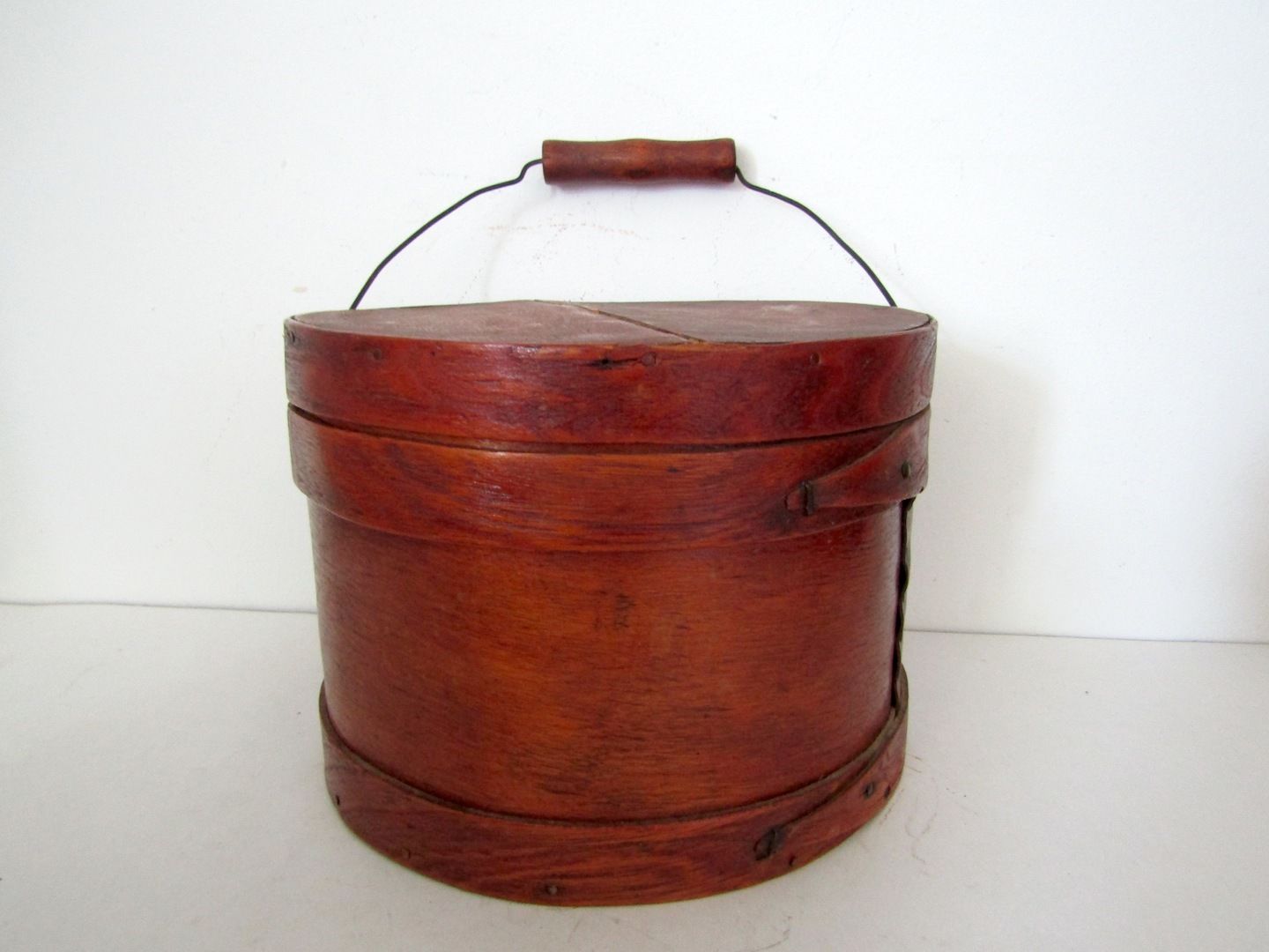 Title (ebay affiliate link): Antique Two strap Firkin Sugar Bucket. Wire Handle w/Lid