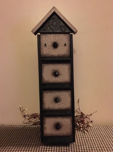 Title (ebay affiliate link): PRIMITIVE CRACKLE CHEST WOOD DRAWERS BLACK TAN COUNTRY DECOR STAR