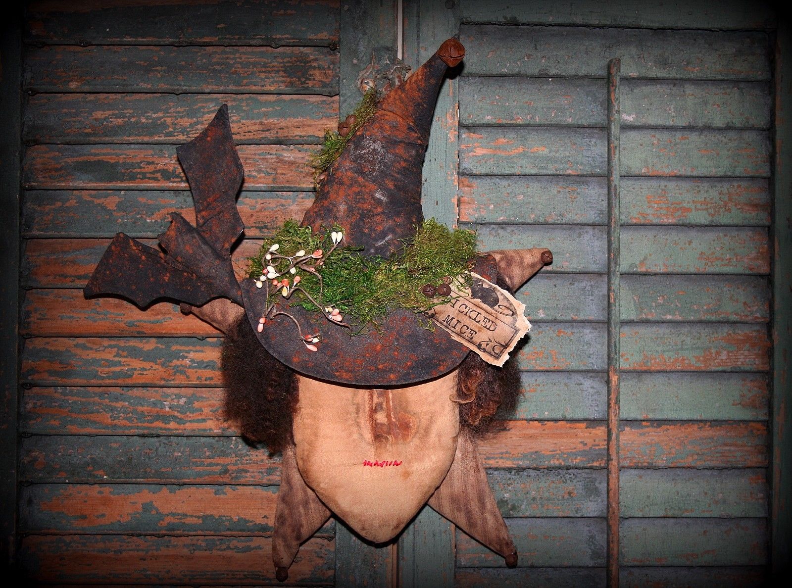 Primitive Grungy Fall Halloween Witch Bat * Wall Hanger