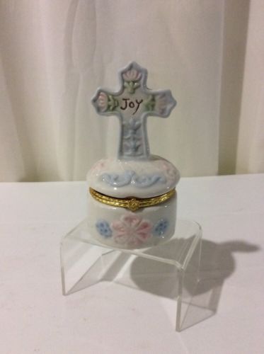 Title (ebay affiliate link): Vintage round porcelain Mini trinket box with cross