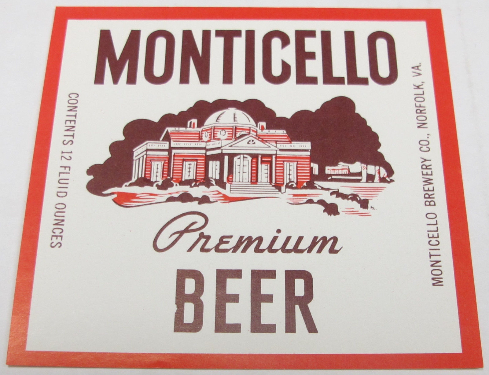 Title (ebay affiliate link): Monticello Premium Beer Monticello Brewery Co Norfolk VA unused 12 oz beer label