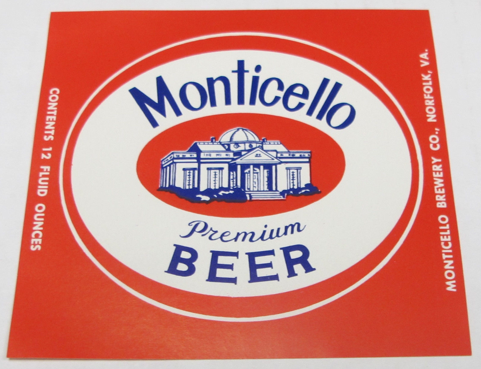 Title (ebay affiliate link): Monticello Premium Beer Monticello Brewery Co Norfolk VA unused 12 oz beer label