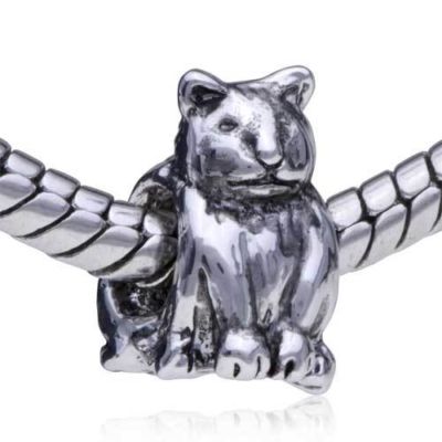 PUGSTER ANTIQUE CAT SILVER CHARM BEAD FOR TROLL M00