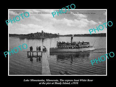 OLD LARGE HISTORIC PHOTO OF LAKE MINNETONKA MINNESOTA, SHADY ISLAND PIER c1910