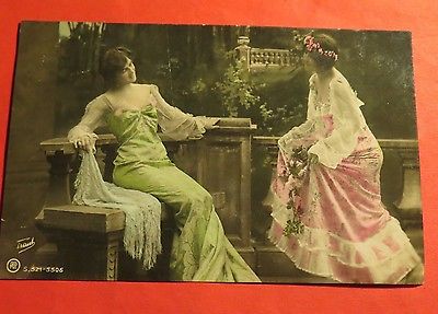 Lovely ladies Colourized French Friendship Vintage Postcard Div back era