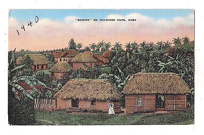 Linen Postcard-"Bohios" or Thatched Huts in Cuba in 1940-VF