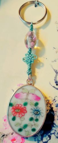 Title (ebay affiliate link): VINTAGE PORCELAIN CHAR 1.5" PENDANT/KEY RING BUTTERFLIES.&WILDFLOWERS.4"-5" LONG