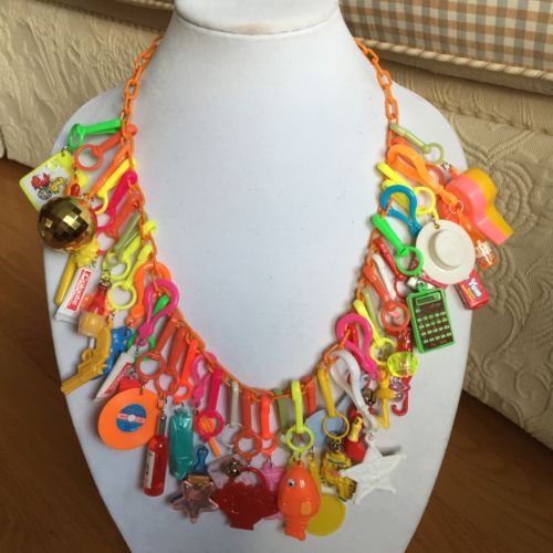 Title (ebay affiliate link): vintage 80's plastic bell charm necklace Umbrella Clown Bat Retro Clip 30+