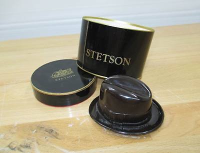 c1950s STETSON PLASTIC MINIATURE BLACK FEDORA HAT SALESMAN SAMPLE ORIGINAL BOX