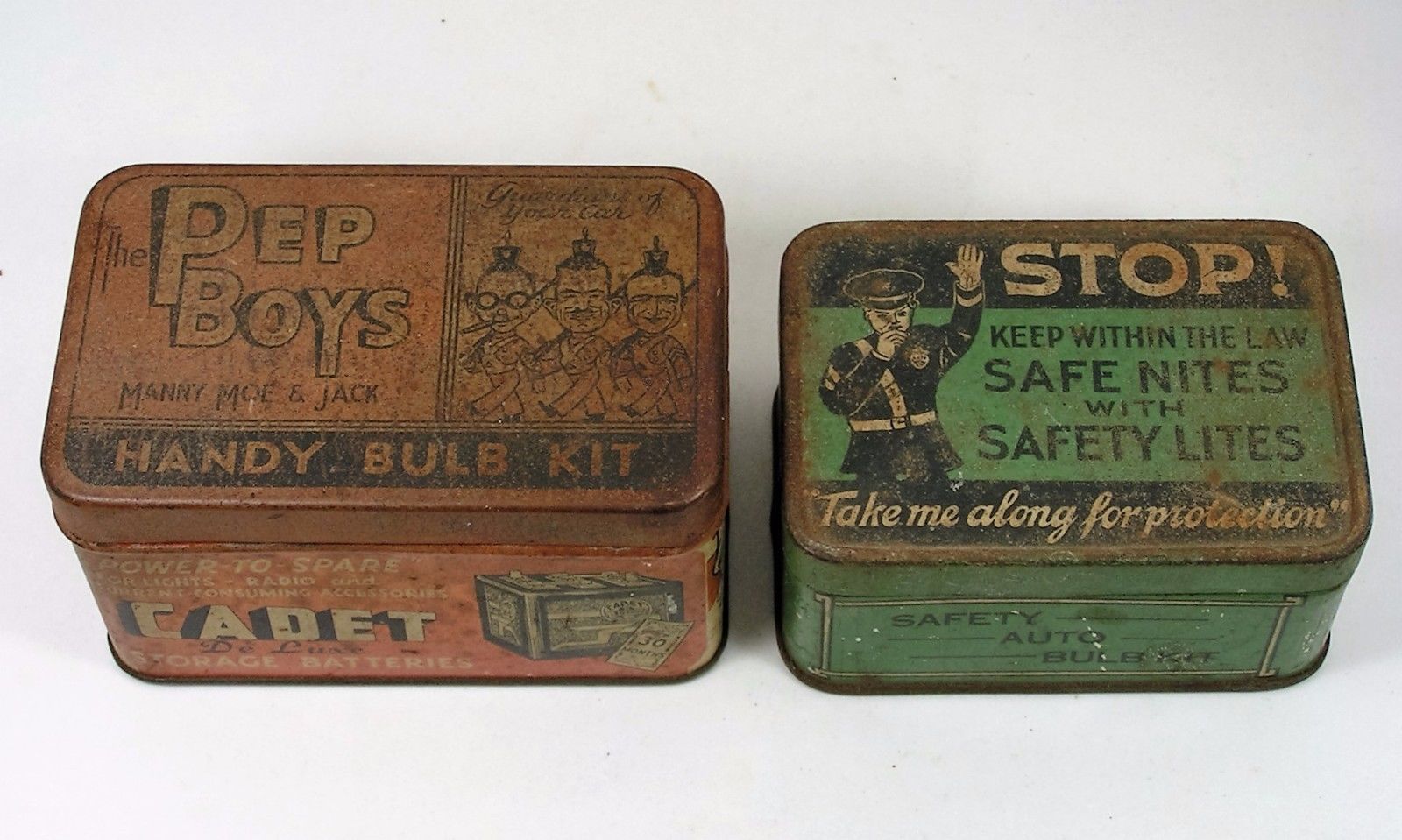 2- Vintage tins. Pep Boys Handy Bulb Kit & Safety Lites Bulb Kit