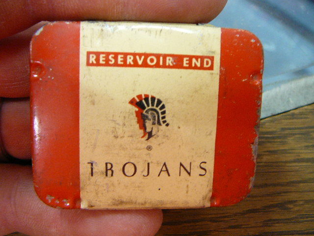 Title (ebay affiliate link): Old Vintage Condom Prophylactic Trojans Trojan Safe Sex Pharmacy Tin Nice
