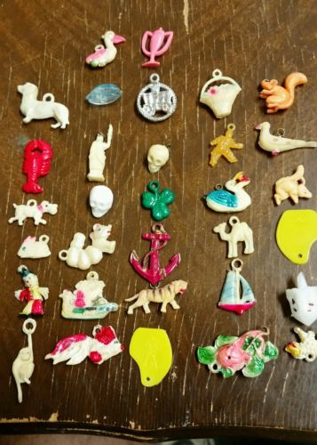 Title (ebay affiliate link): VINTAGE Celluloid MIXED LOT OF 32 Cracker Jack Gumball Toy Prize Charms