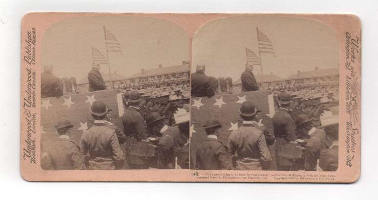 Title (ebay affiliate link): Stereoview Card William McKinley Addressing Troops Philippines San Francisco CA