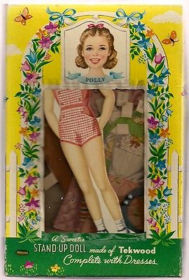 Title (ebay affiliate link): 1956? A SWEETIE DOLL POLLY ORIG. OUTFITS NO 4124 STAND MADE OF TEKWOOD WHITMAN