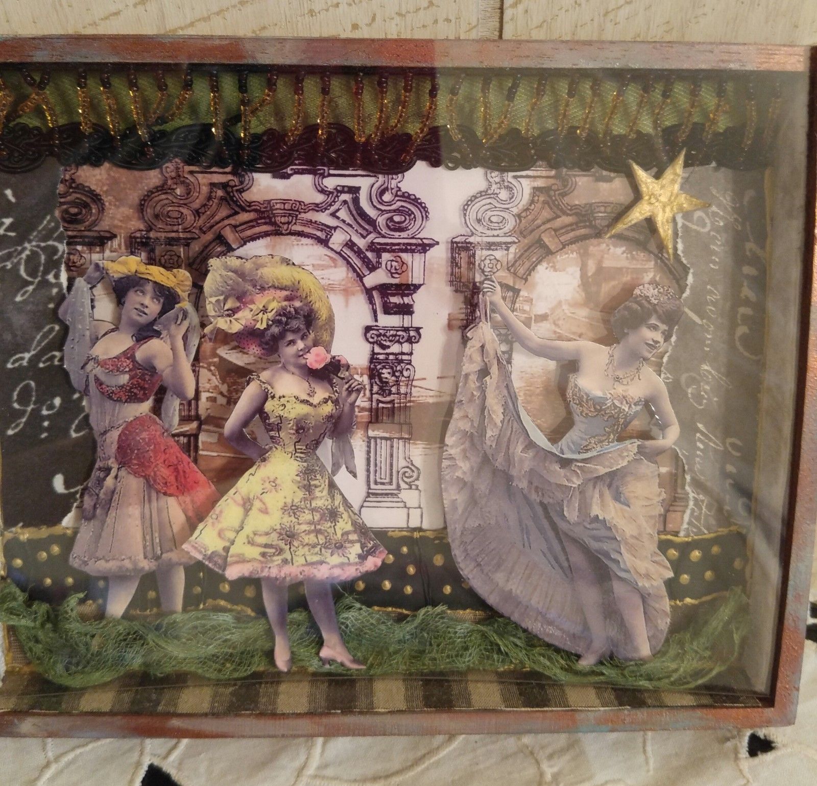 Title (ebay affiliate link): Primitive Folk Art OOAK Altered Collage Diorama Mixed Media Paris Moulin Rouge